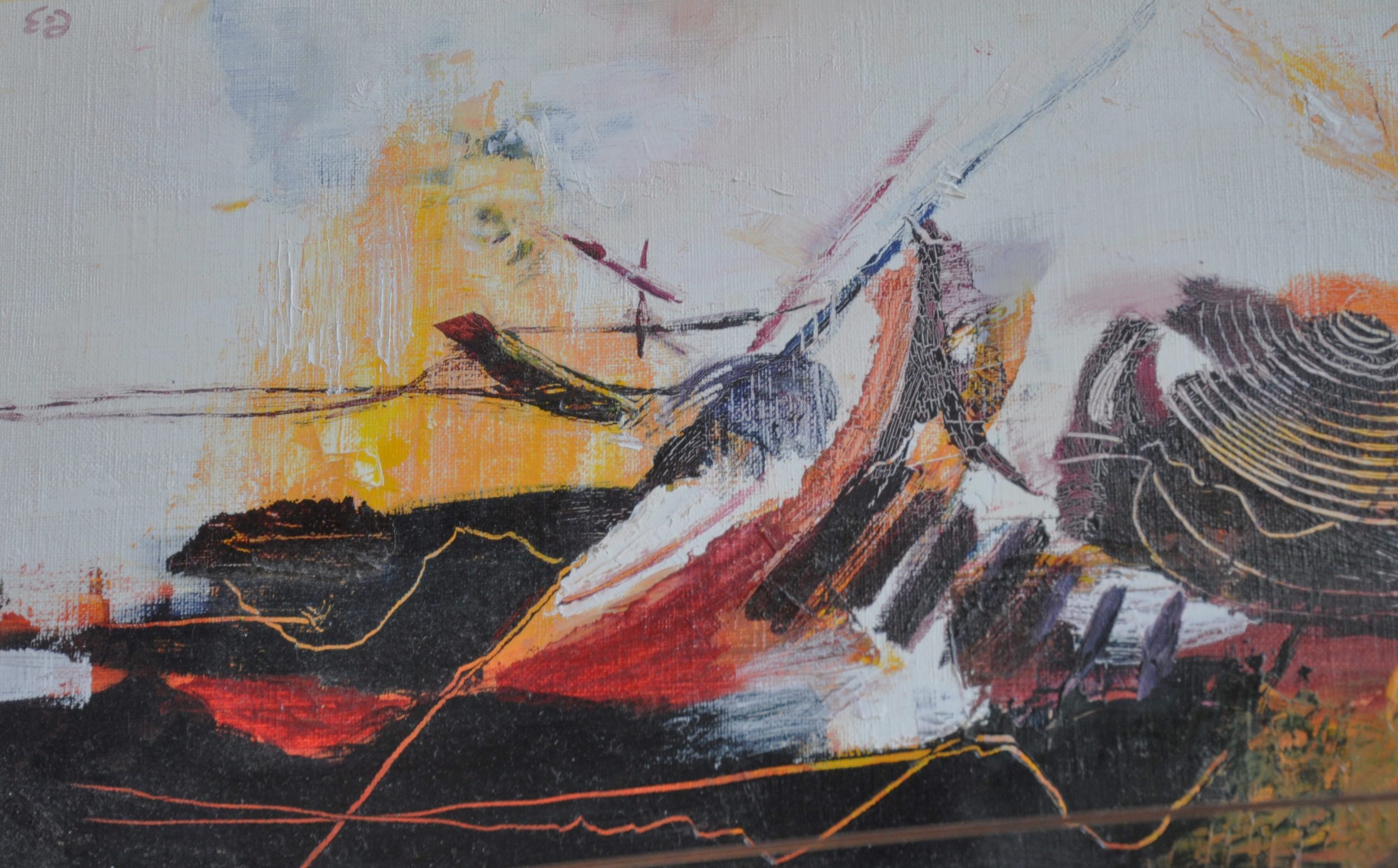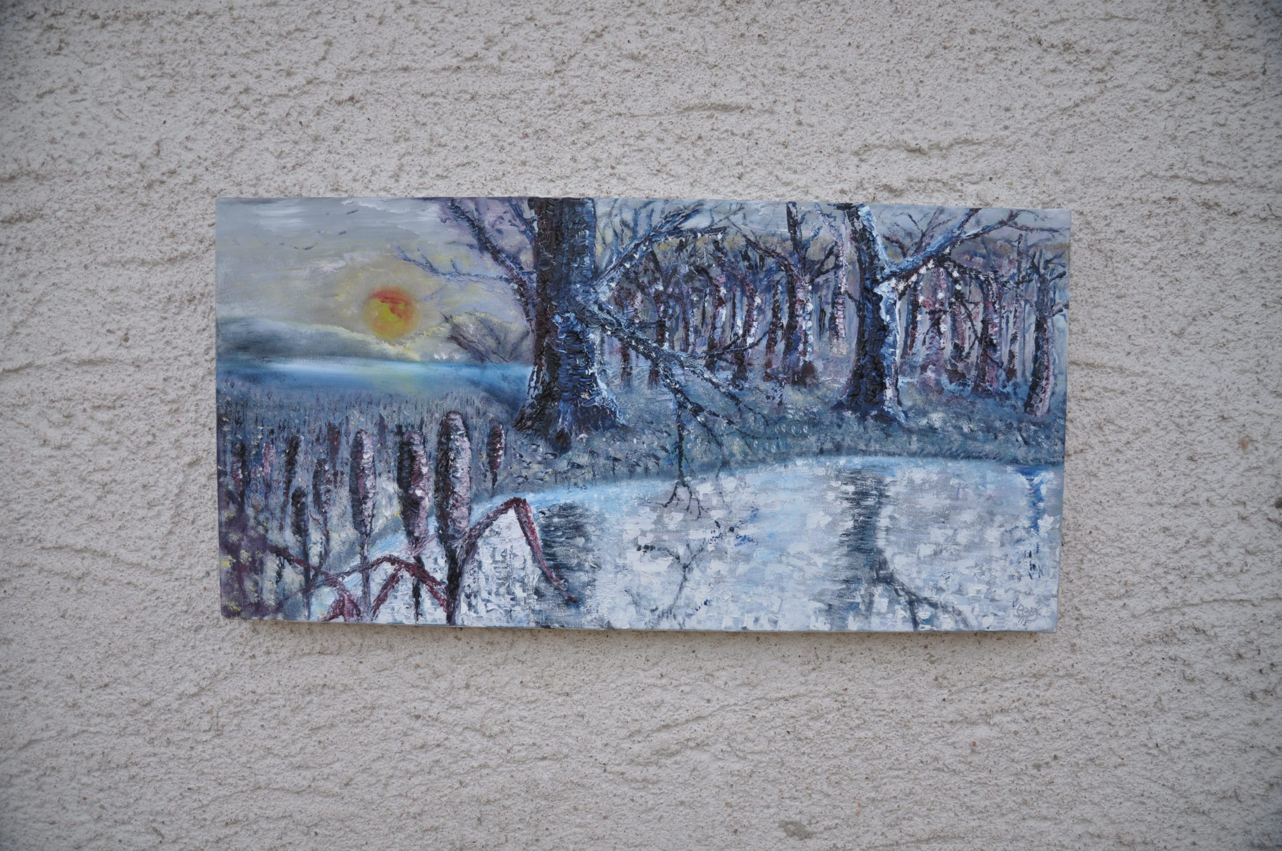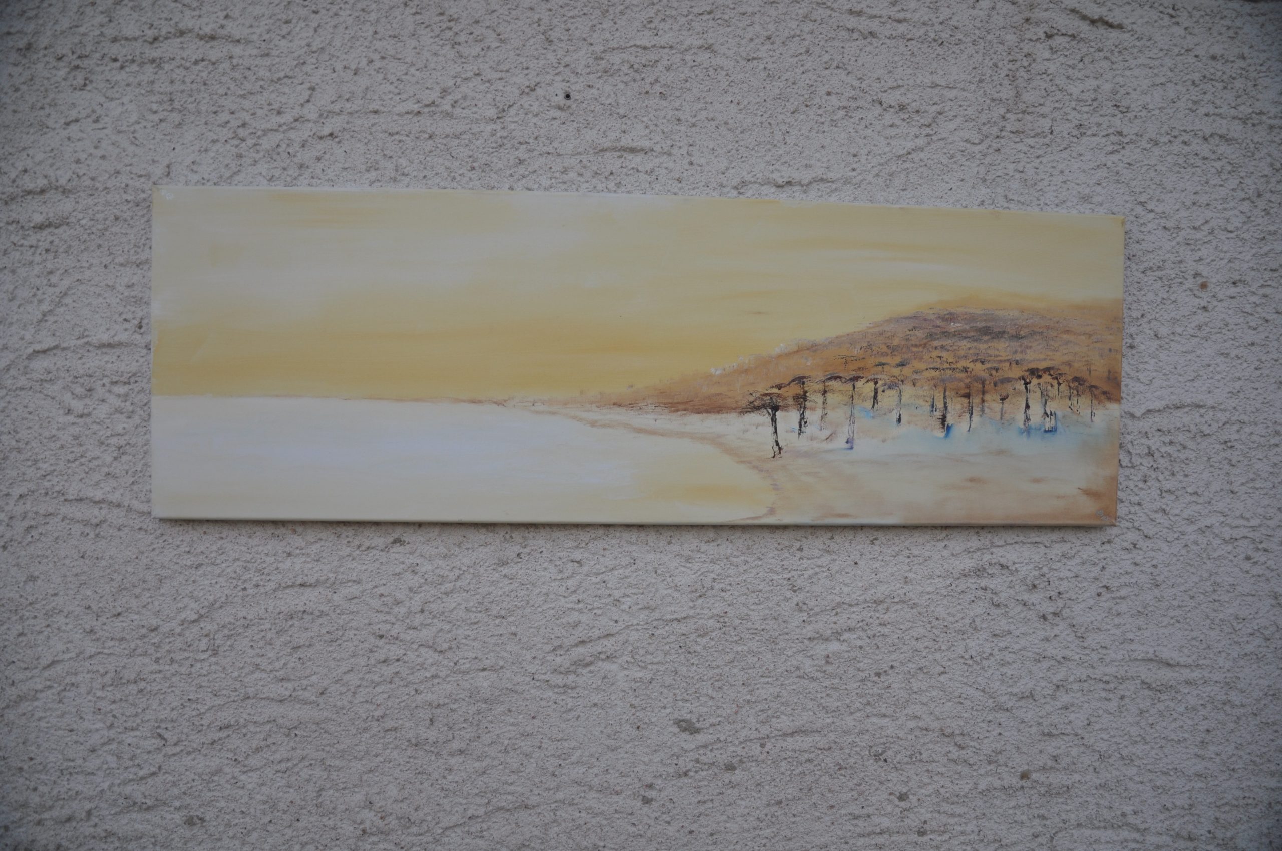 Pour info : Lorsque vous regardez le tableau le soleil est derrière votre épaule droite et va passer par dessous le tableau aller rejoindre la lune qui apparait au loin au-dessus des collines à gauche.